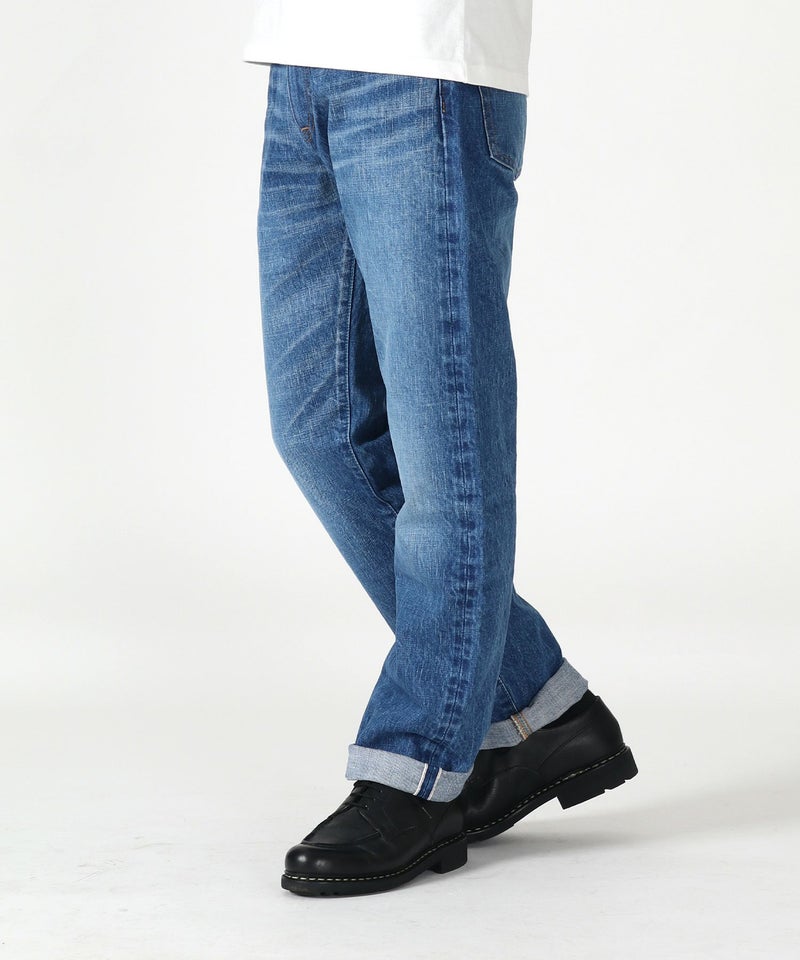 深めの股上とやや太めのシルエットのクラシックストレートモデル。