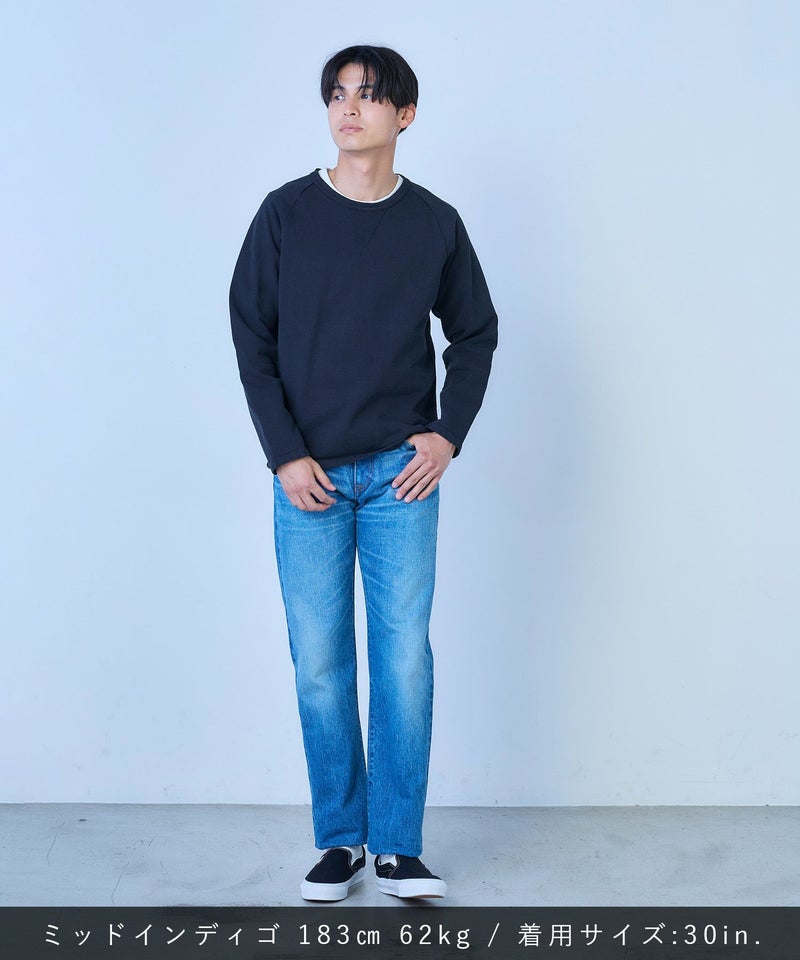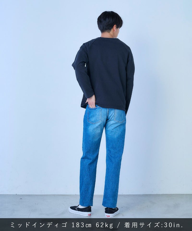 自然な色落ちが映え、こなれ感を演出するミディアムインディゴブルー。