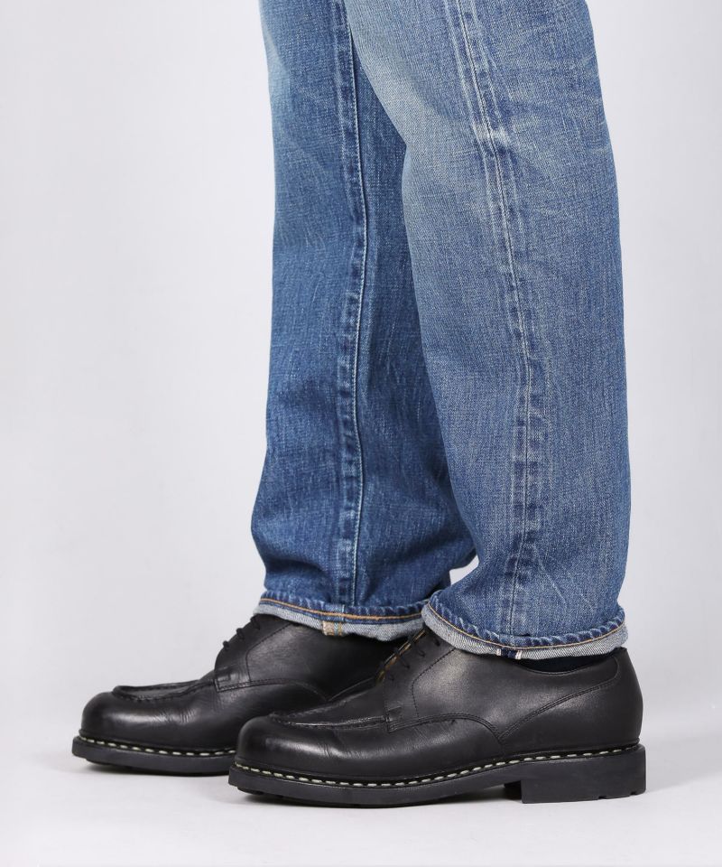 深めの股上とやや太めのシルエットのクラシックストレートモデル。
