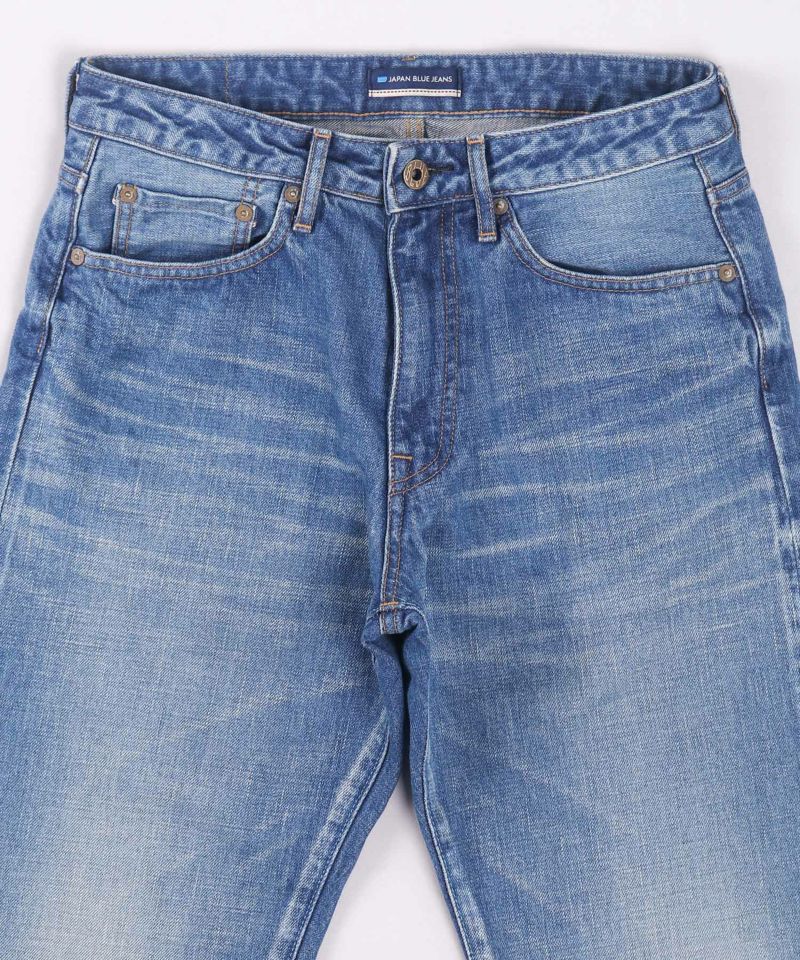 しっかり穿きこまれたジーンズをイメージして、生地が本来持つナチュラルな茶綿の風合いを表現した色落ちを児島の加工技術で再現しています。