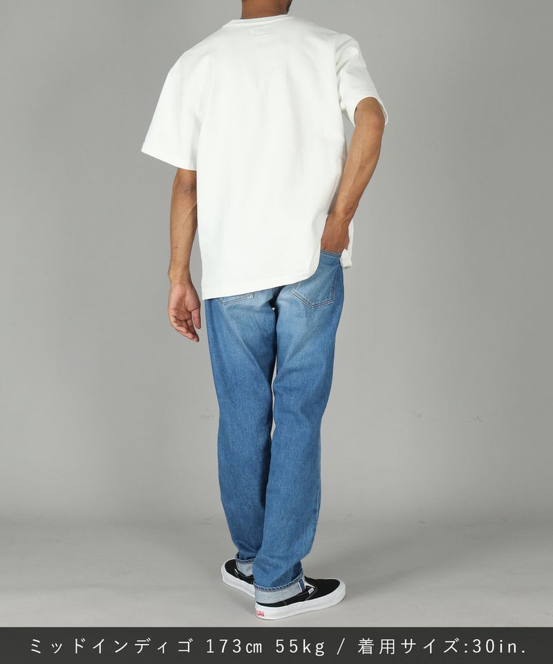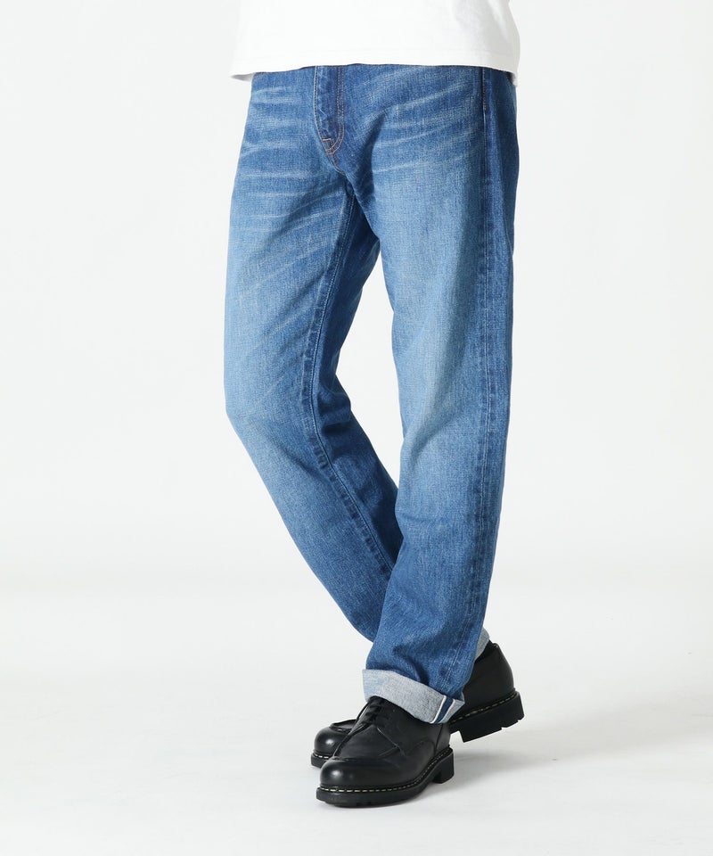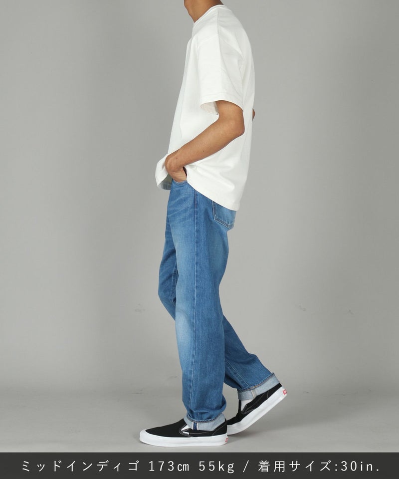深めの股上とやや太めのシルエットのクラシックストレートモデル。