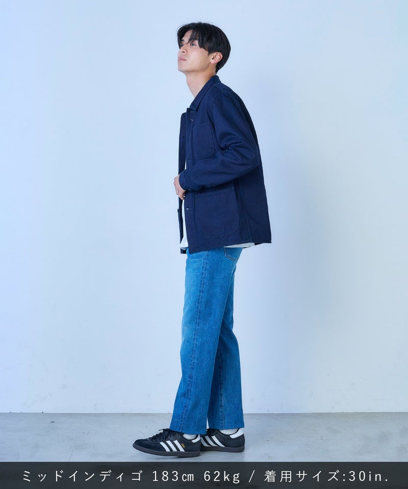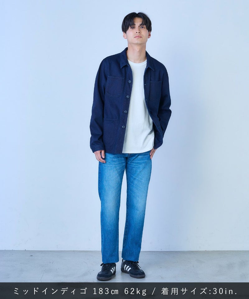 自然な色落ちが映え、こなれ感を演出するミディアムインディゴブルー。