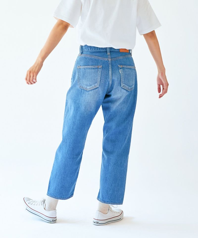 ヴィンテージウォッシュ加工を施した、鮮やかなブルーが映えるジーンズです。