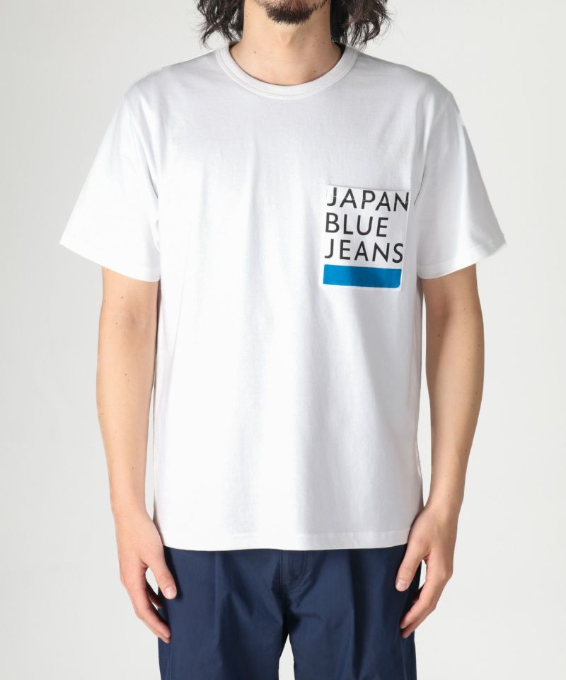 JAPAN BLUE JEANSのロゴを胸ポケットに大胆にプリントしたデザイン。