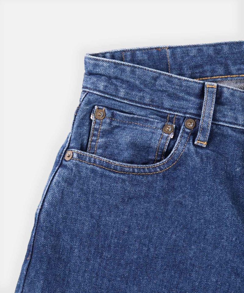 染めや織りの工程を綿100%の生地同様に施すことで、ストレッチの穿きやすさも持ちながら、綿100%のような素材感や色落ちを実現しました。