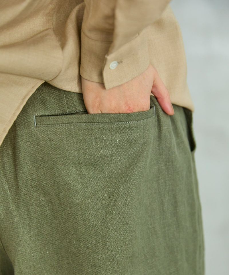 25番手のフレンチリネン糸で織った厚手のツイル素材。