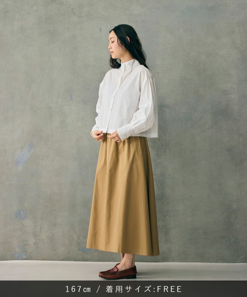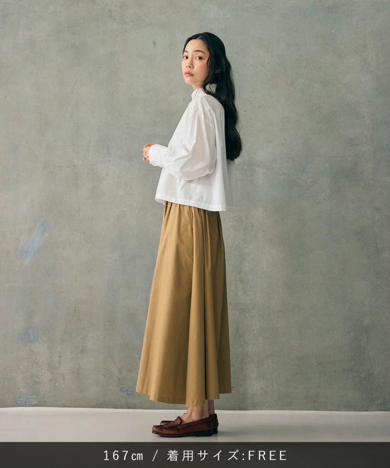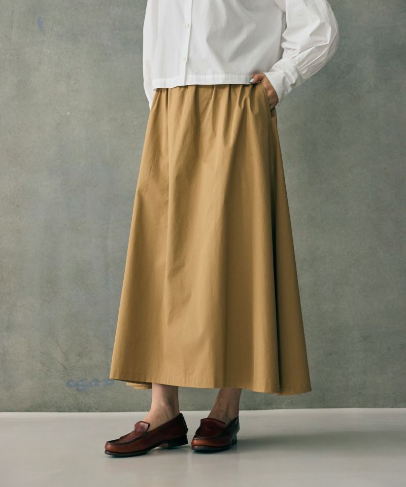 足元まで隠れるロングスカートなので、気になる脚のラインも自然にカバーしてくれます。