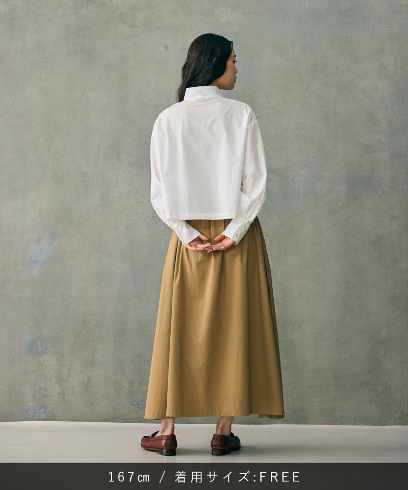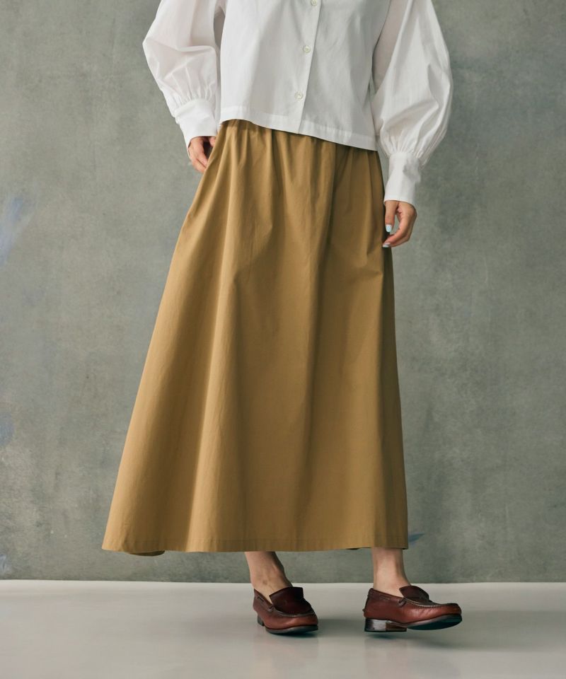 たっぷりのギャザー入りで、ふわっと広がるAラインシルエットのスカート。