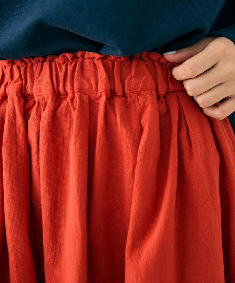 ウエストまわりに細かくタックの入った広がりのあるスカート。
