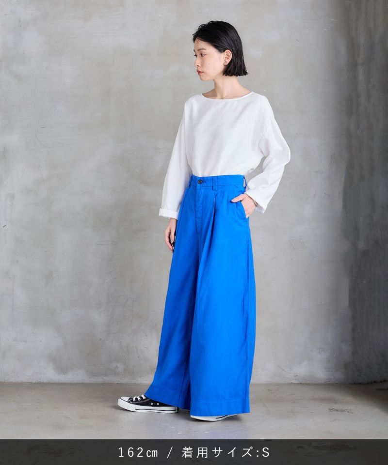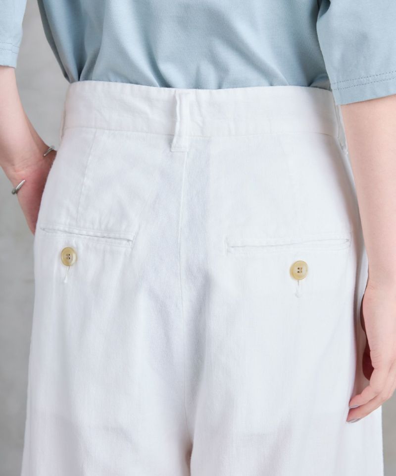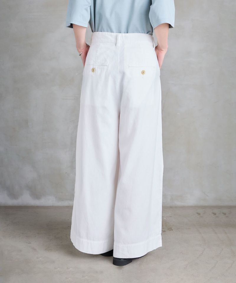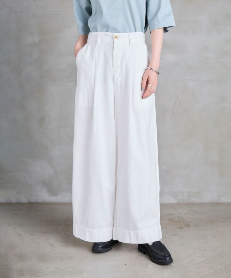 フロントにタックの入ったワイドストレートパンツ。