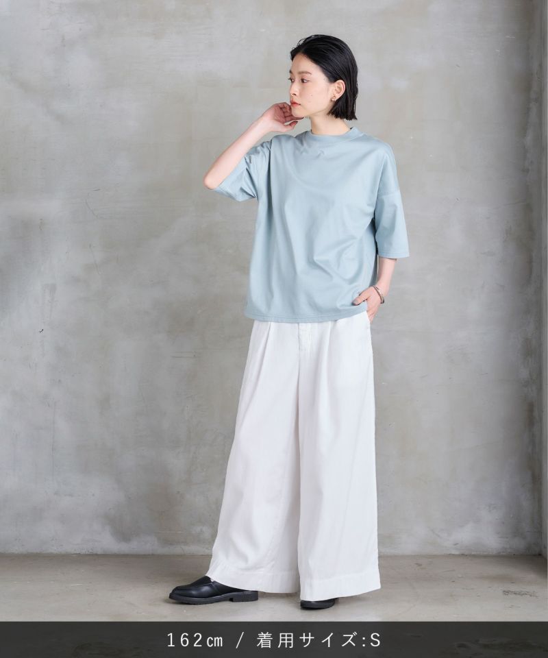 ゆったりとしたシルエットながらハイウエストのため、短めのトップスを合わせたりタックインをしてウエスト周りをすっきりさせれば脚長効果も抜群。