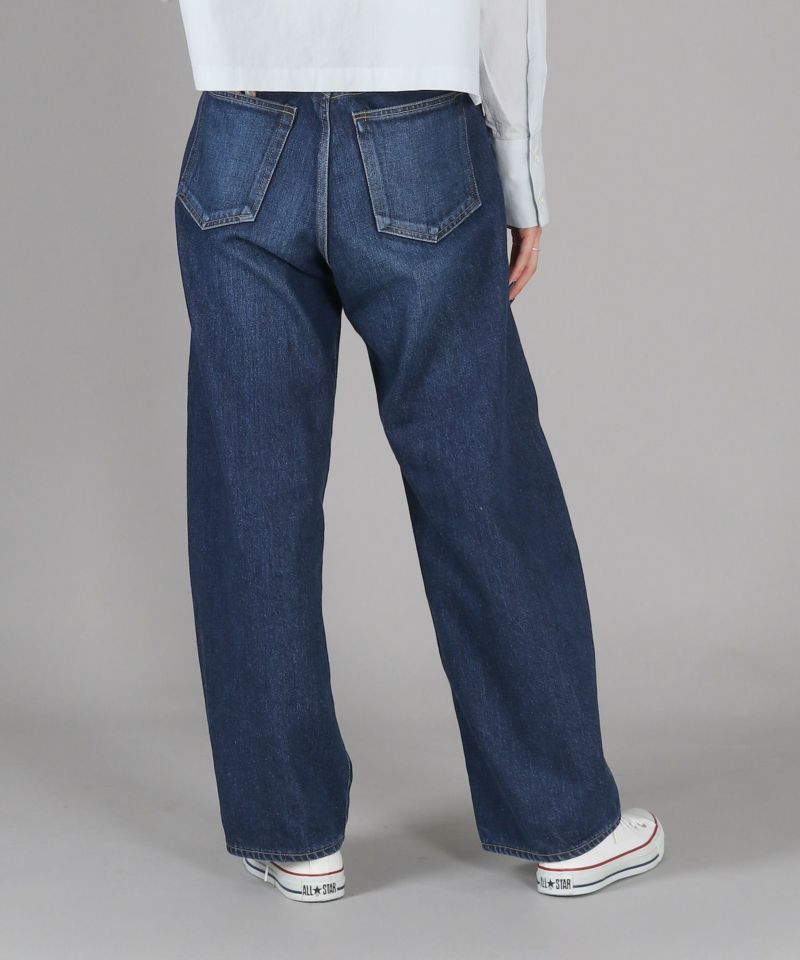 インディゴの深みはしっかりと残しながら、女性らしい淡いトーンになるような色落ち加工をしています。時間が経つにつれてさらに明るい色合いに変化していきます。