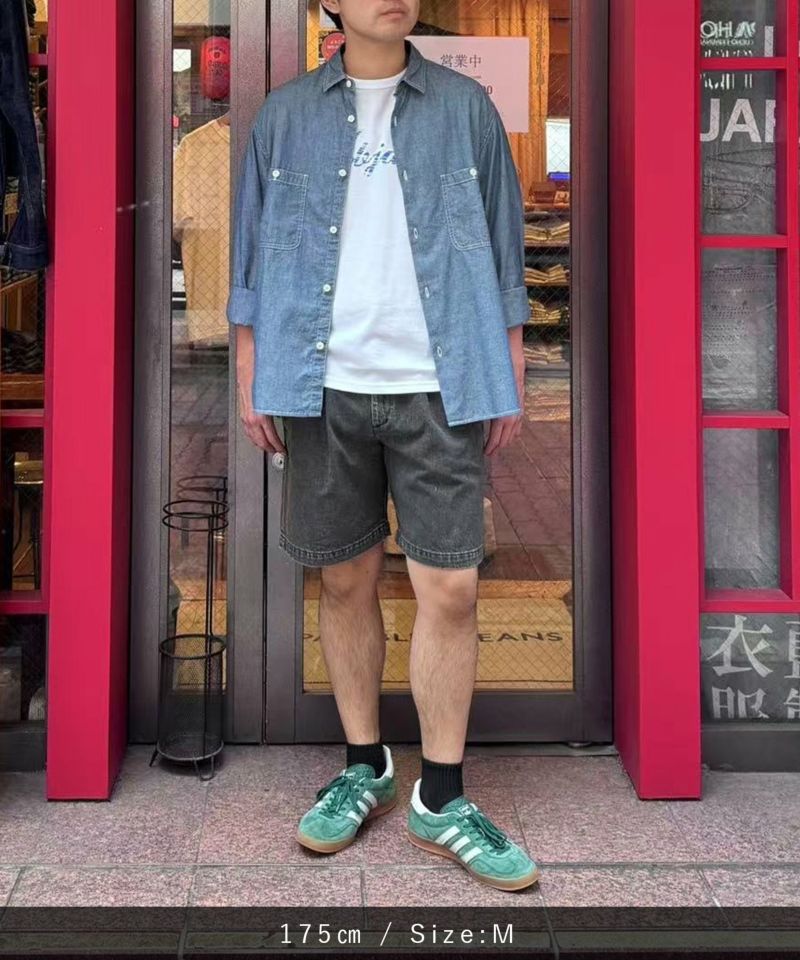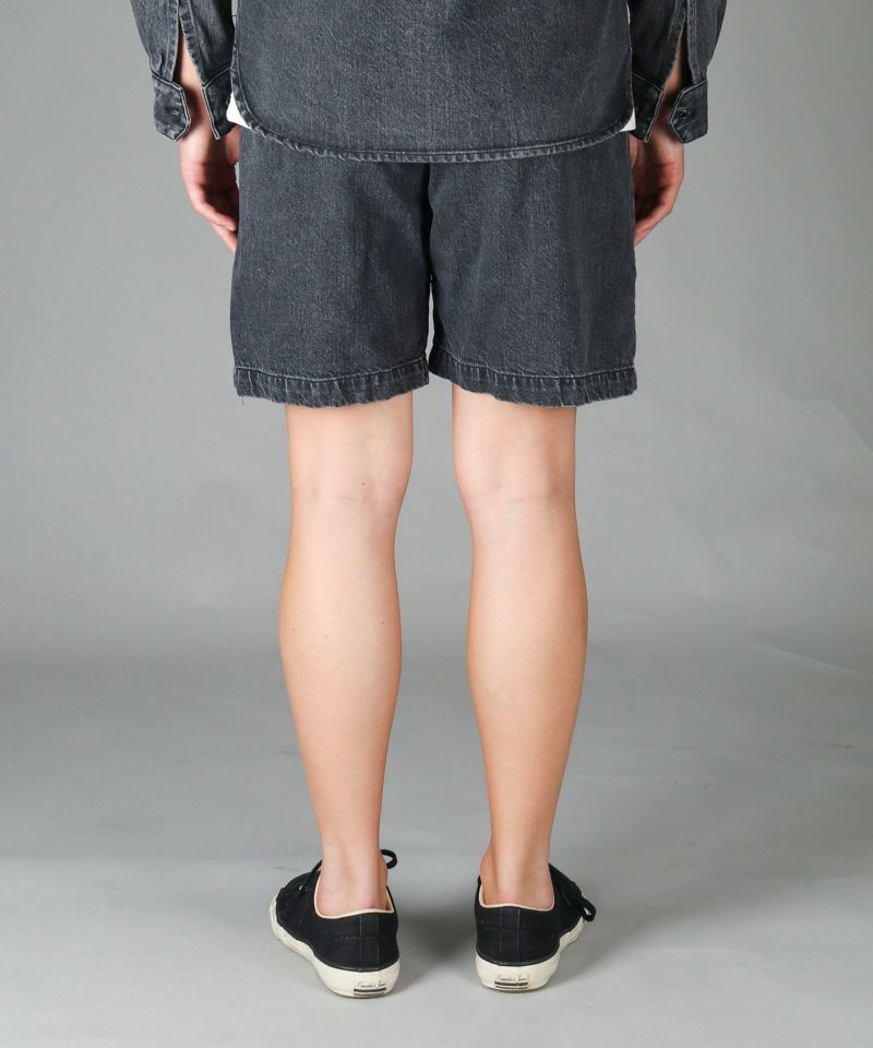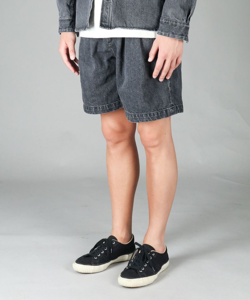 グルカショーツの独特なボリューム感をベースに、刺し子素材で仕立てた一着。