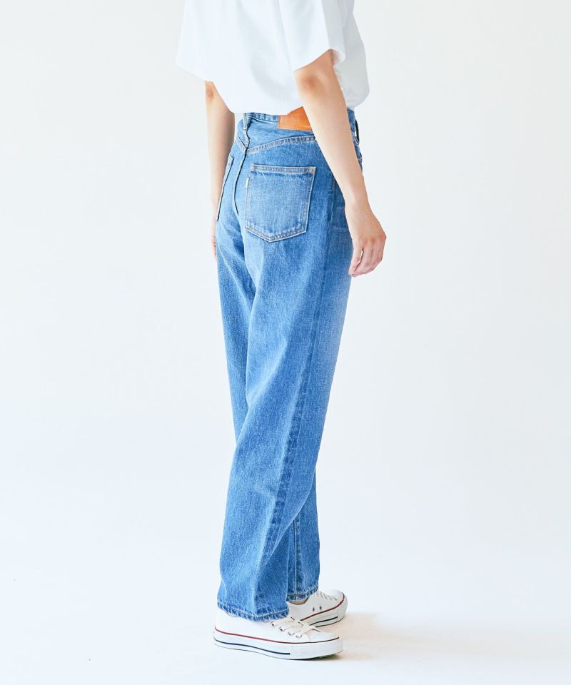 ヴィンテージウォッシュ加工を施した、鮮やかなブルーが映えるジーンズです。