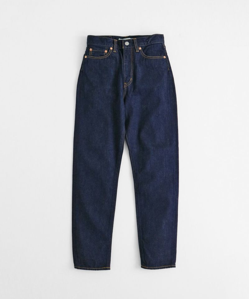 腿から裾にかけてゆるやかなテーパードがかかっており、足元をスマートな印象に見せます。