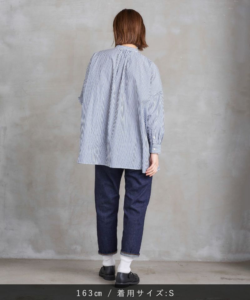 柔らかい生地ながらも程よい厚みがあるので透けにくい素材となっています。裾を折り返した時の赤耳がポイント。
