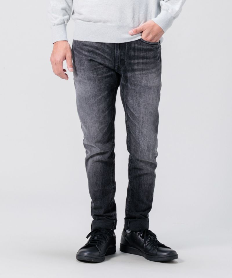 膝から裾に向かって一気に絞ったテーパードモデル。