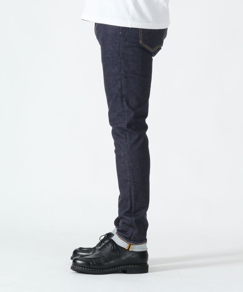 股上はやや深く、裾に向かって一気に絞りをかけたすっきりシルエット。