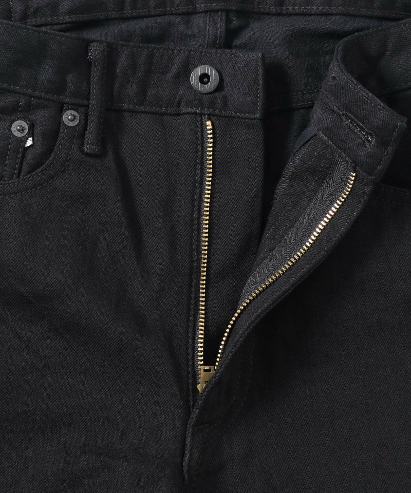 タテ糸・ヨコ糸ともに硫化染色の糸を使用した、深みのあるブラックが魅力。