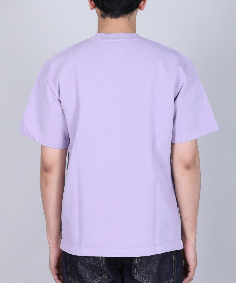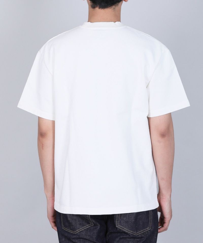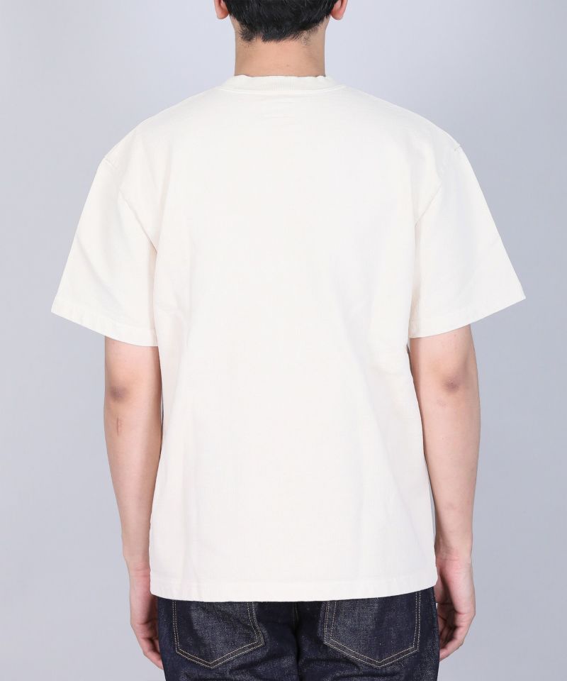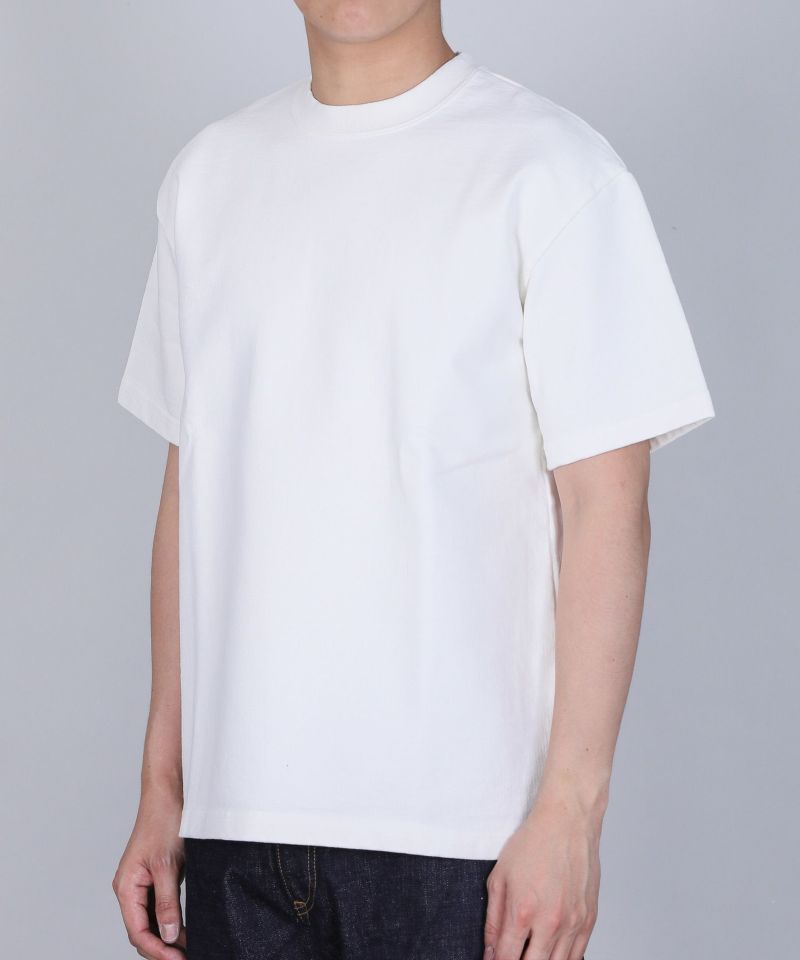 生地は空気精紡により、適度な空気を含んだしっかりとした風合いの糸を度詰めのインレイ編みにしています。通常の編み方にもう1本糸を入れることで、ハードな生地感を実現。