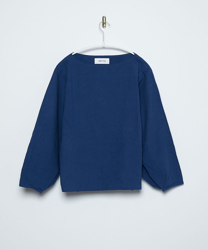 ボートネックタイプのスモック風シャツ。