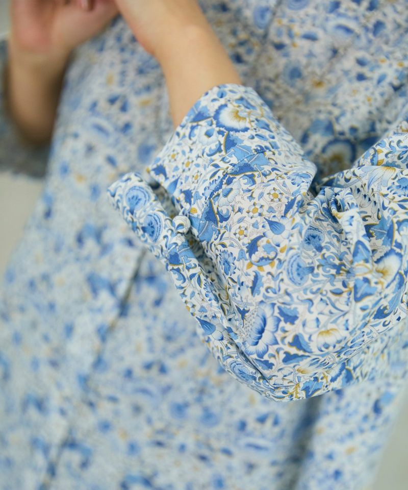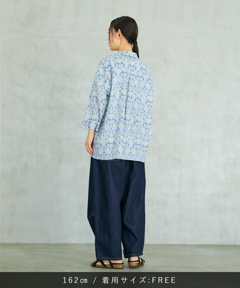 リバティプリントを日常に気負わず楽しめる、襟付きの七分袖シャツ。