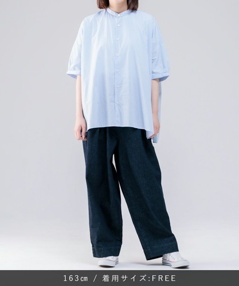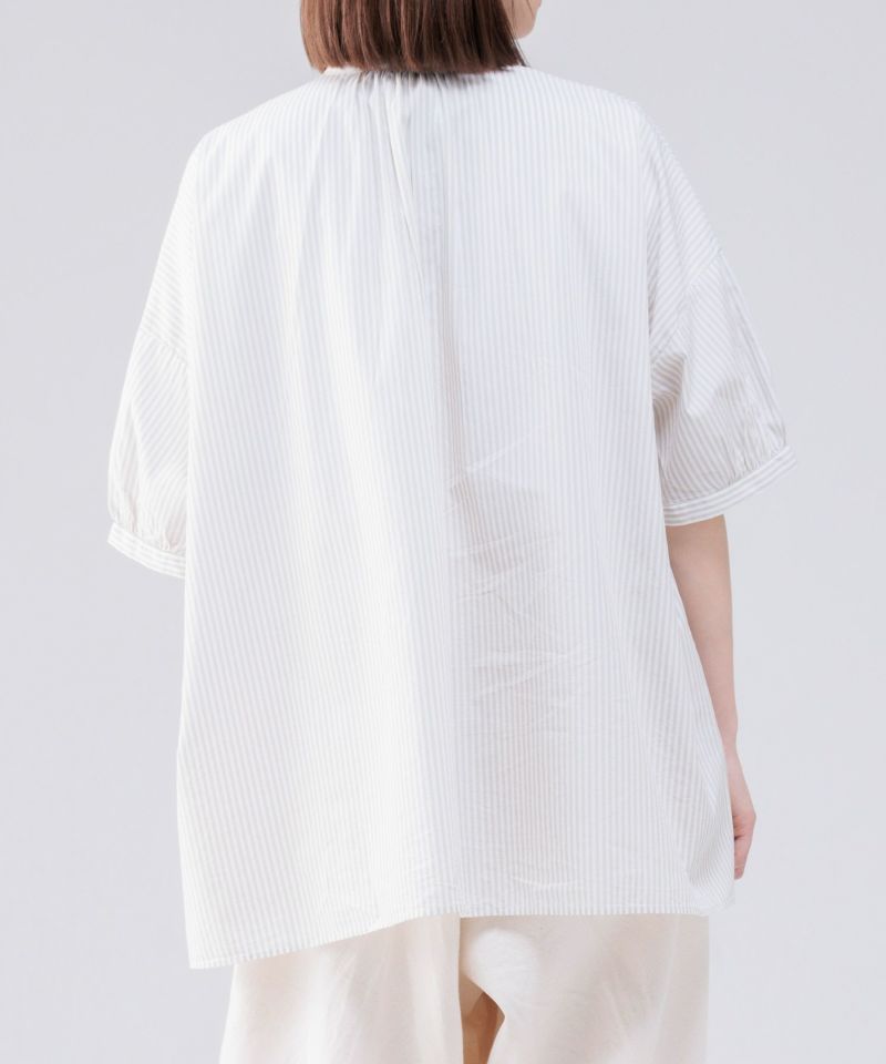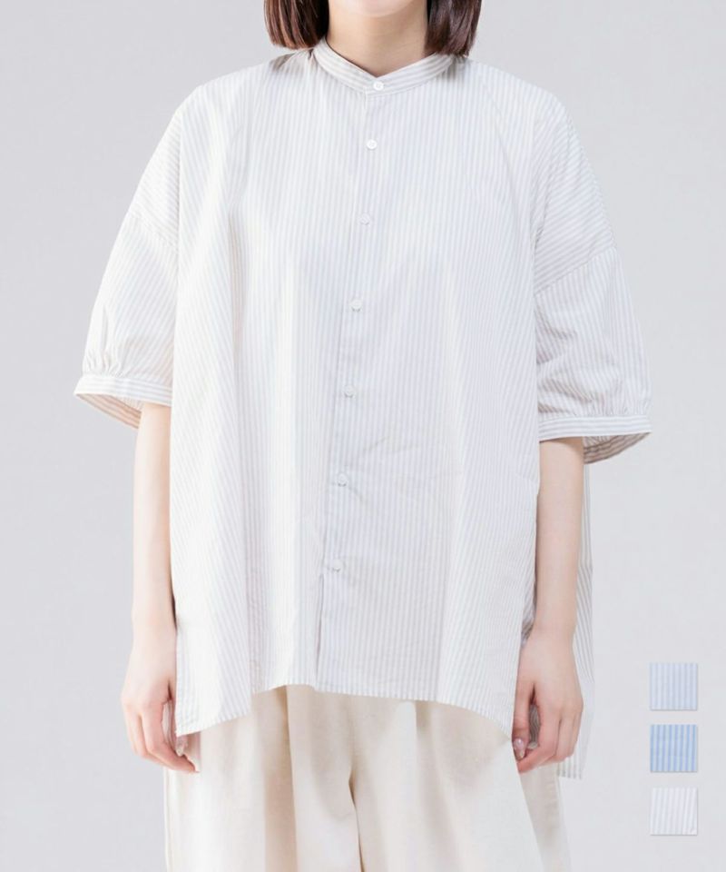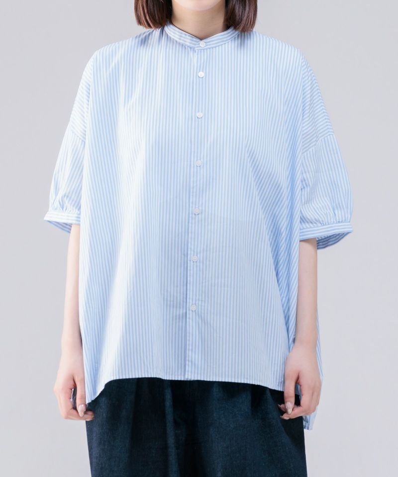 定番シャツの「FARMS SHIRT」を5分袖にし、袖をパフスリーブ仕様に。