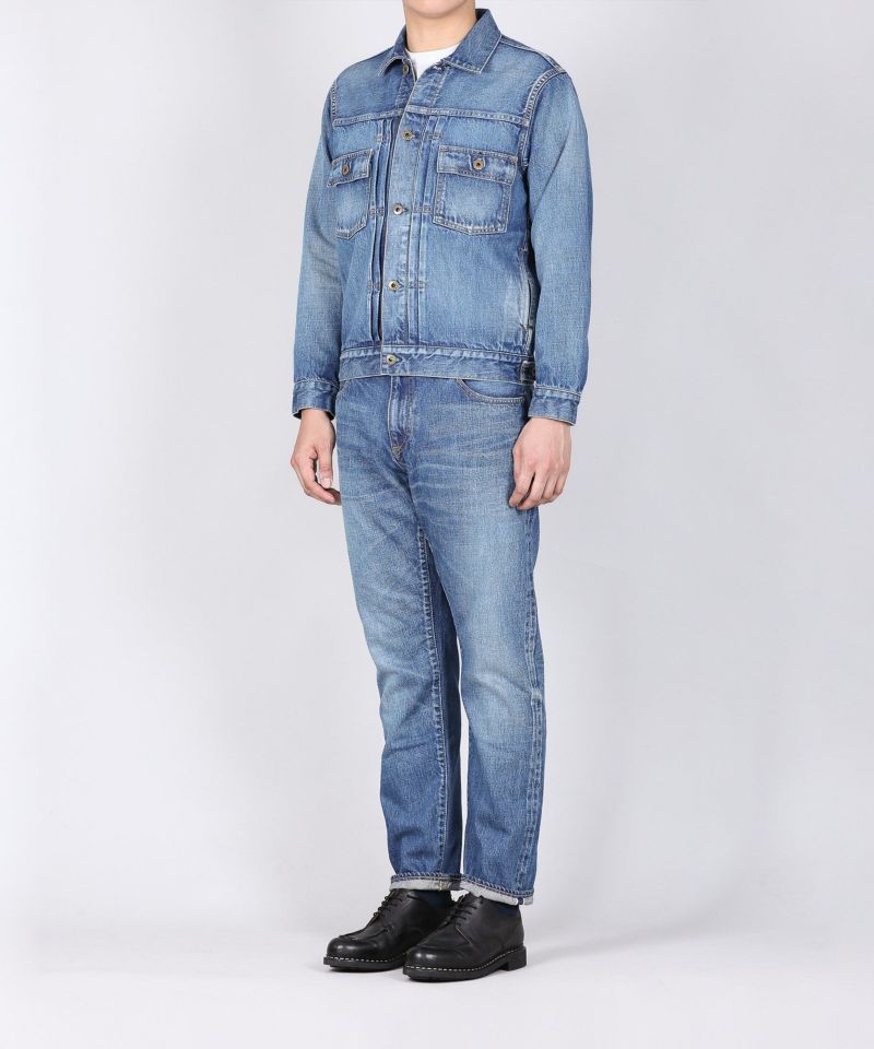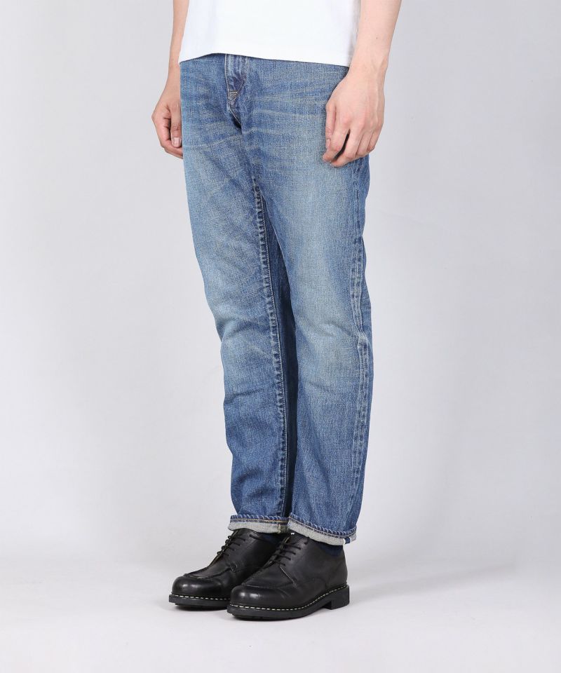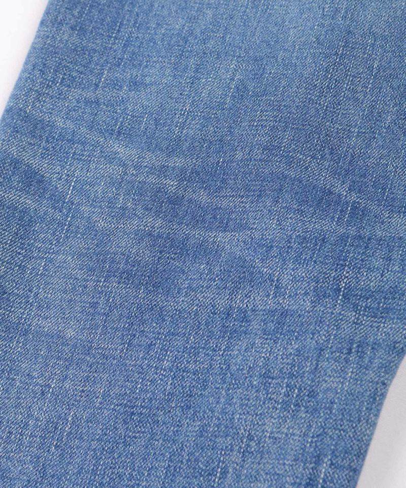 しっかり穿きこまれたジーンズをイメージして、生地が本来持つナチュラルな茶綿の風合いを表現した色落ちを児島の加工技術で再現しています。