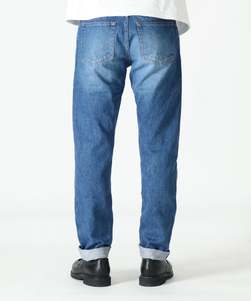 自然な色落ちが映え、こなれ感を演出するミディアムインディゴブルー。