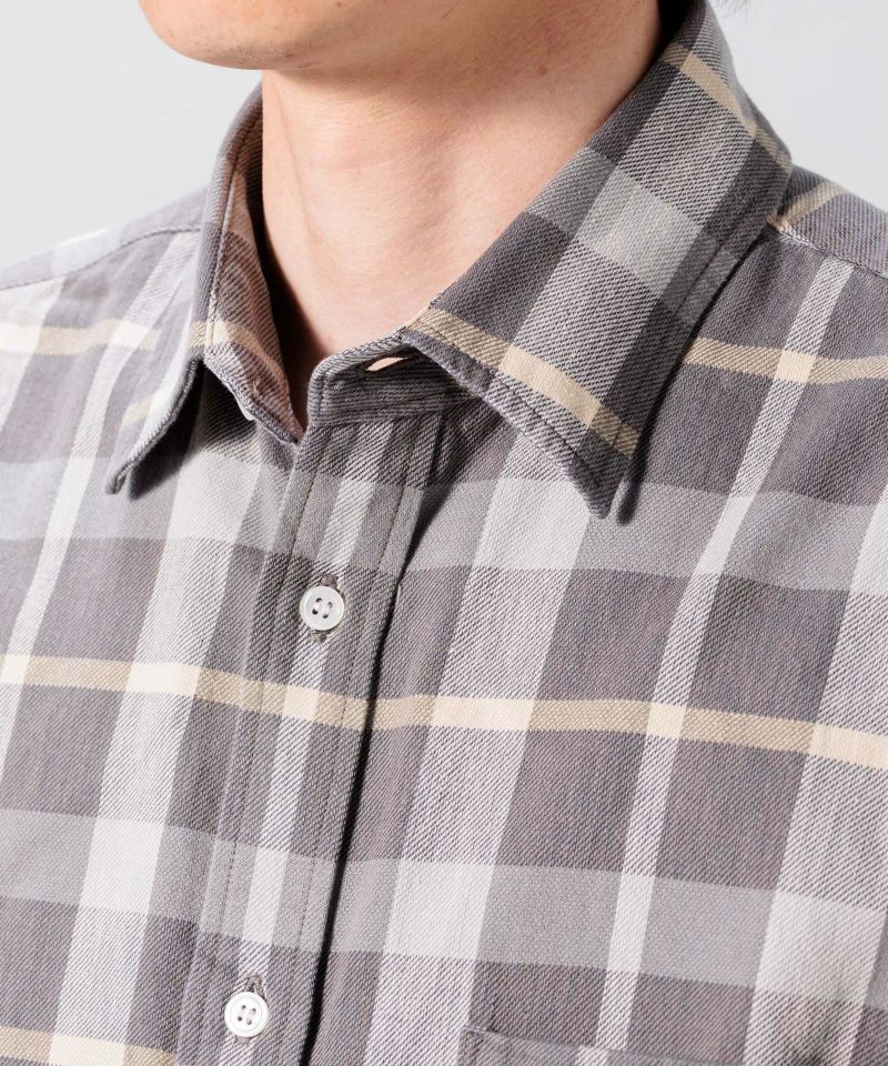 オーソドックスなレギュラーフィットのチェックシャツ。