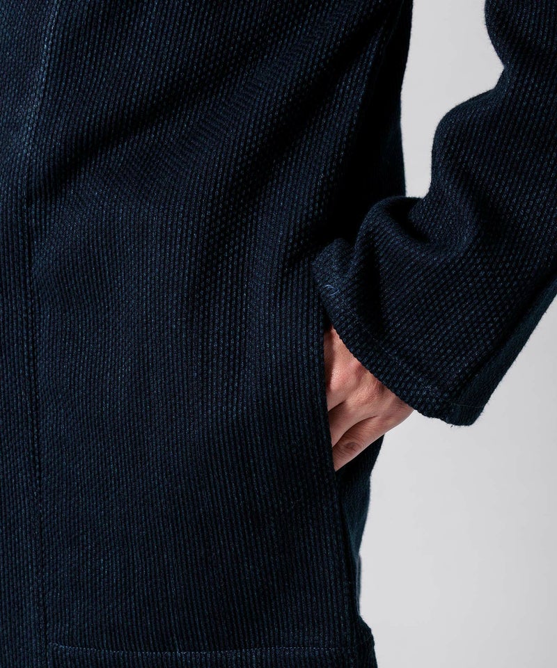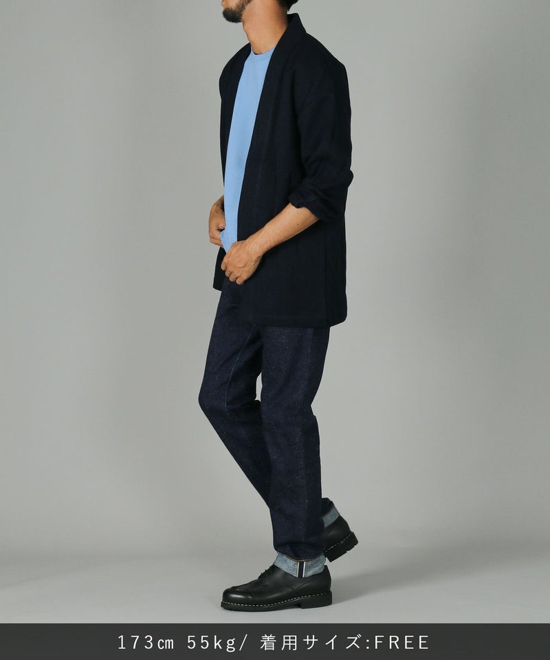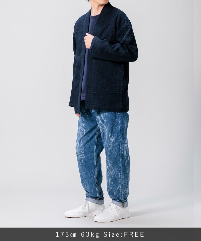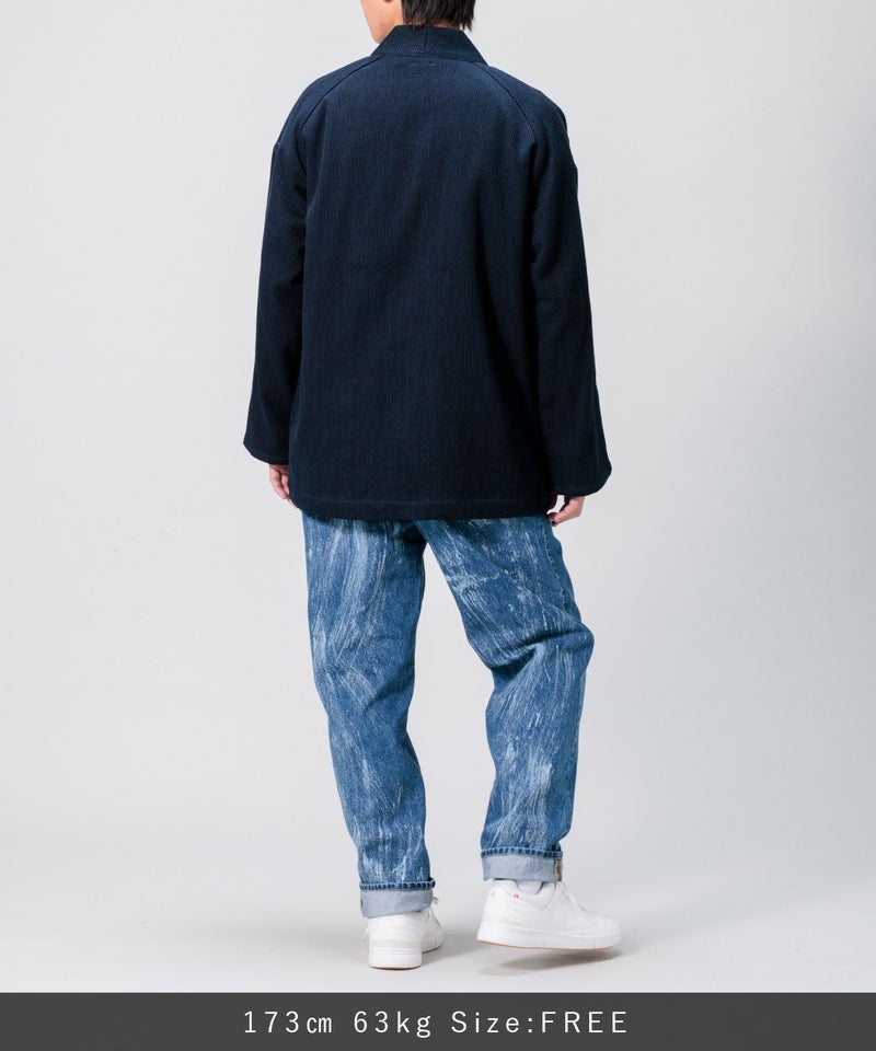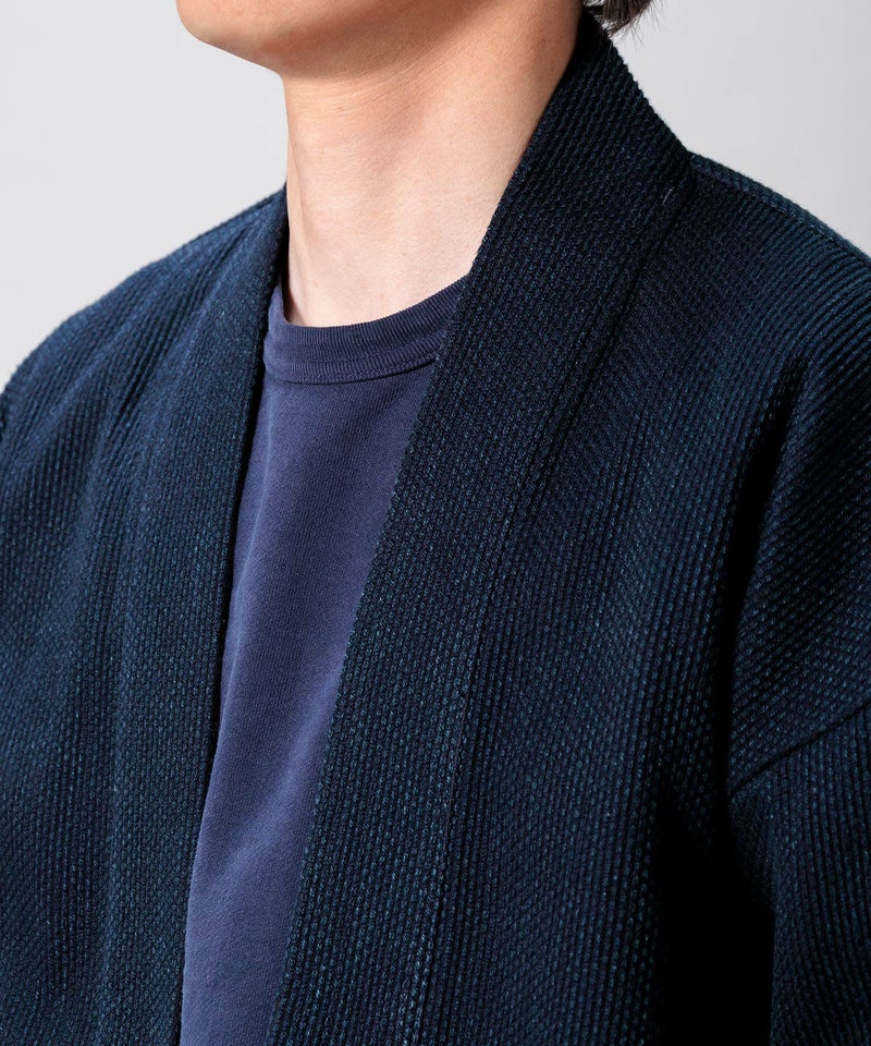 フリーサイズでシンプルなデザインながら大人モダンなこなれた雰囲気を味わえる刺子の羽織。