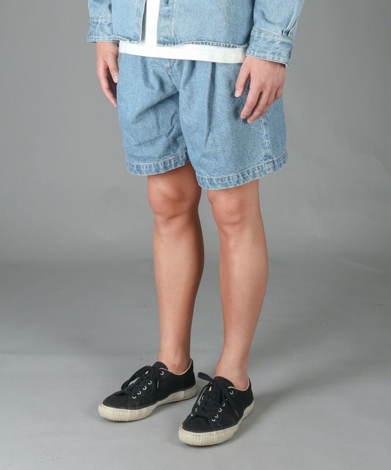グルカショーツの独特なボリューム感をベースに、刺し子素材で仕立てた一着。