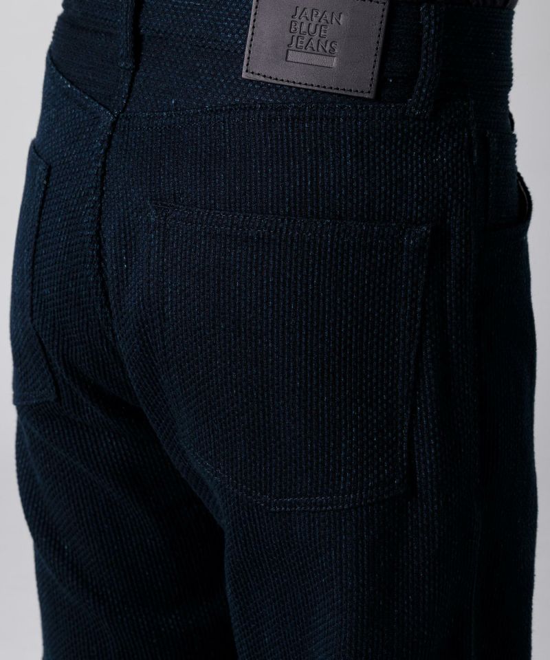 通常のデニム生地と同じロープ染色のインディゴカラーで染められた糸を使用しているため、経年変化もお楽しみいただけます。