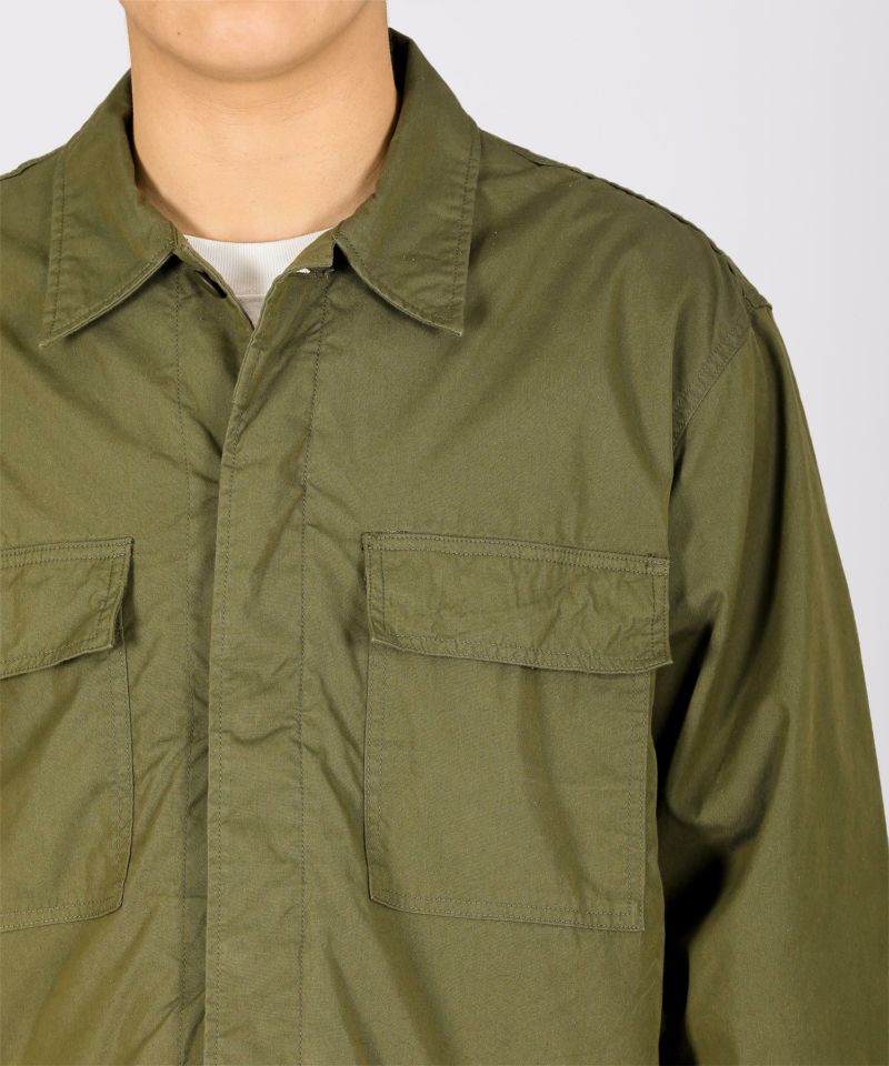米軍で使われていたユーティリティーシャツをモチーフに、ジャケットとしても着られるように改良したシャツジャケット。
