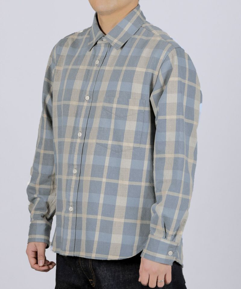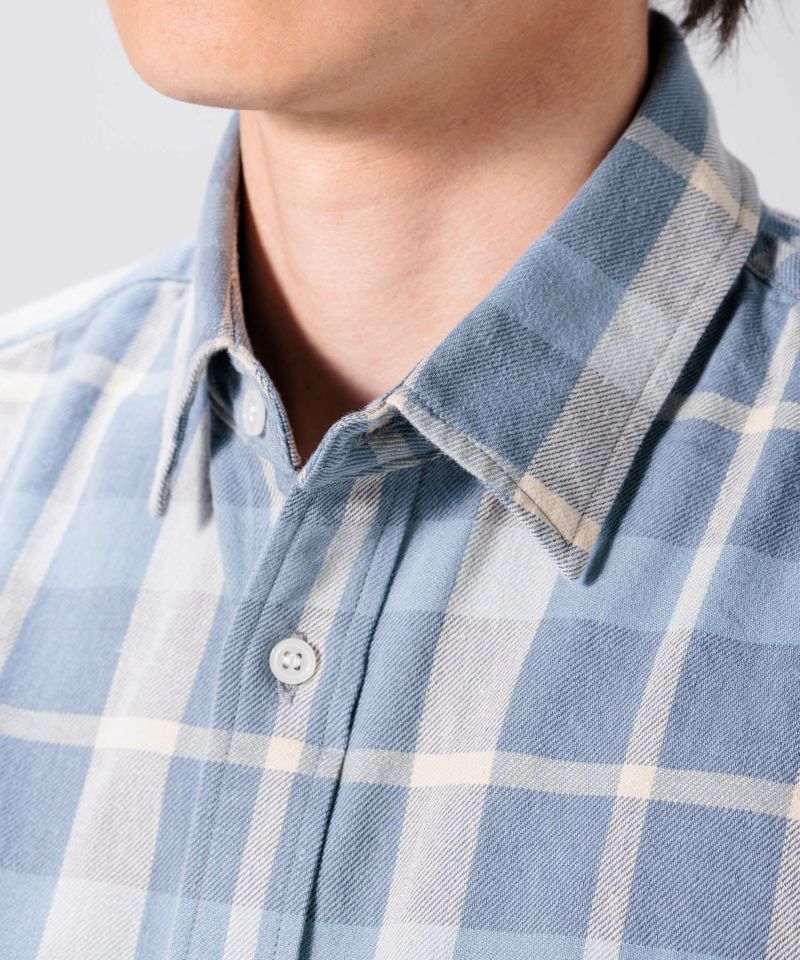 オーソドックスなレギュラーフィットのチェックシャツ。
