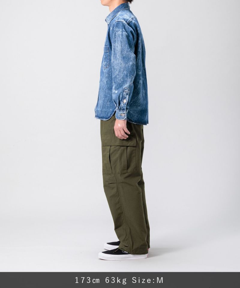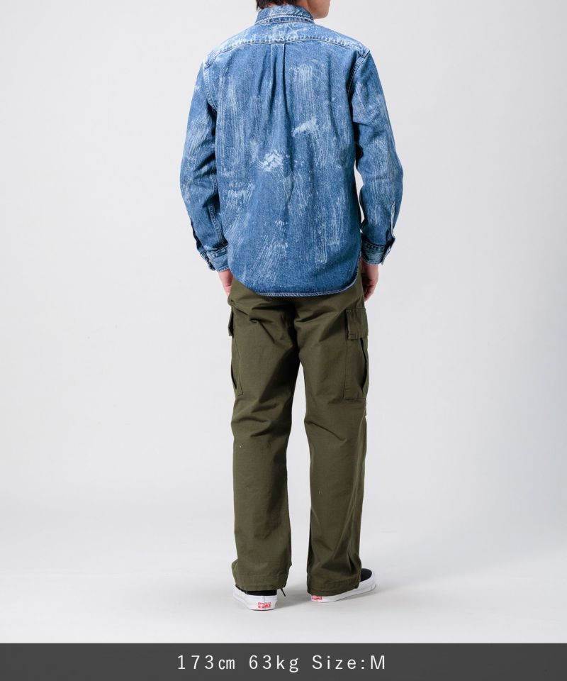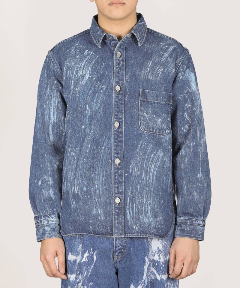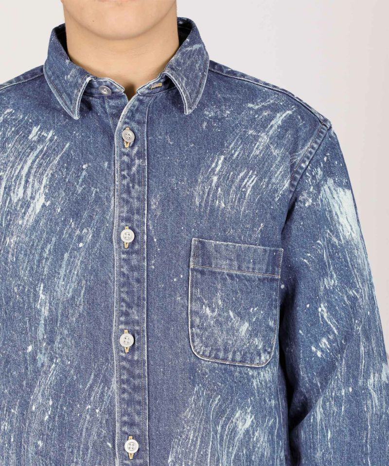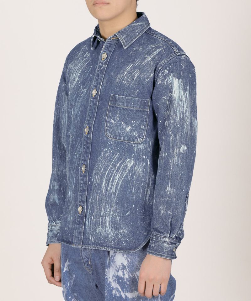 刷毛を使ったブリーチ加工のデザインが特徴的でコーディネートのアクセントに。