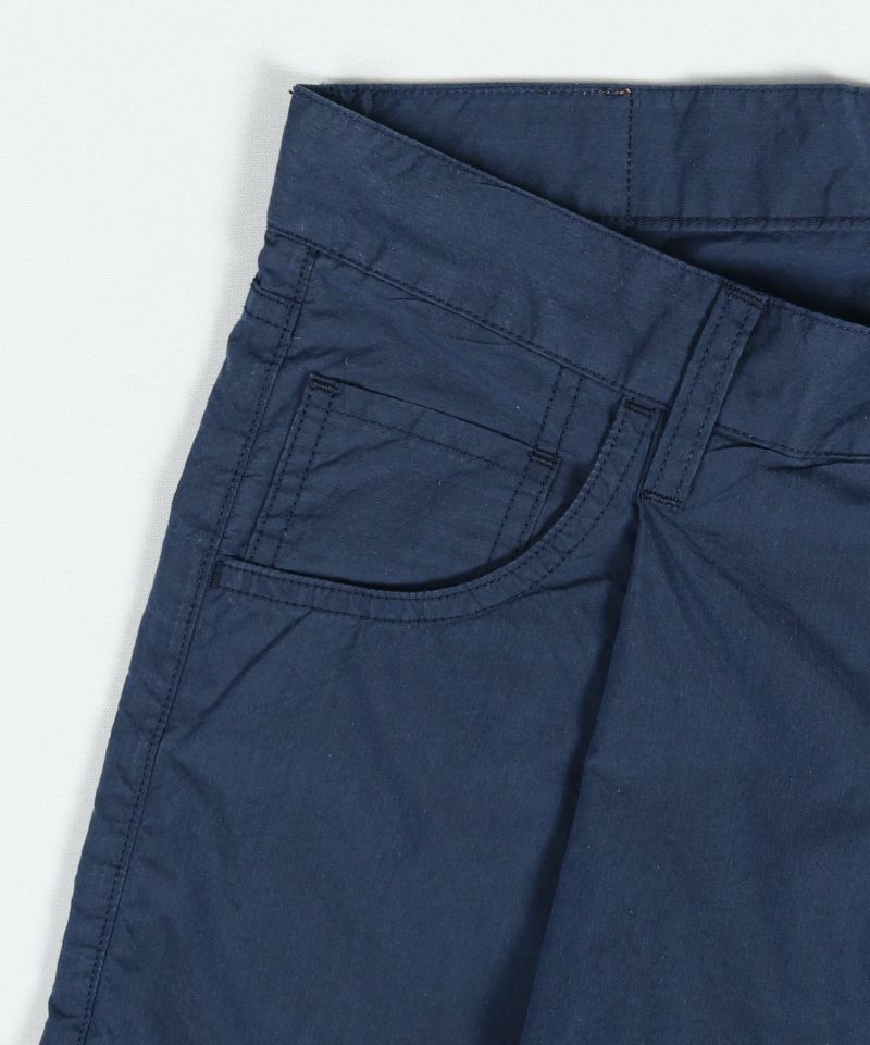 また、通常の洗い工程よりも強く、長く、丁寧に洗いをかけているため、インディゴならではのアタリやパッカリングを意図的に表現し、デニムとは異なる表情に仕上げています。
