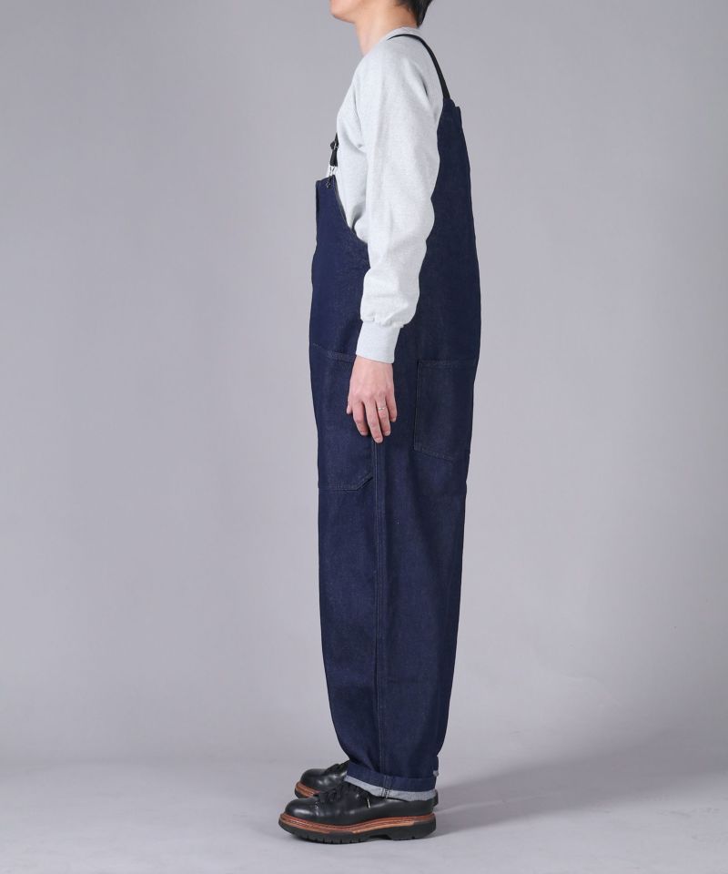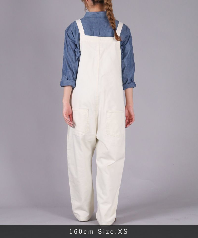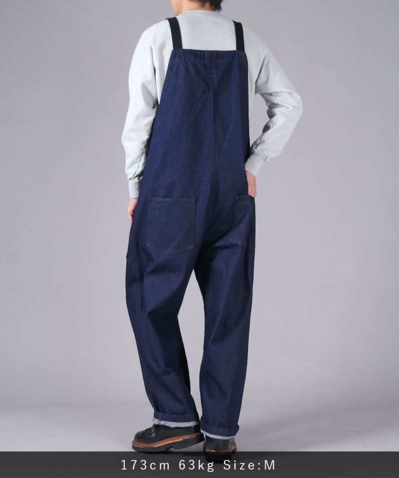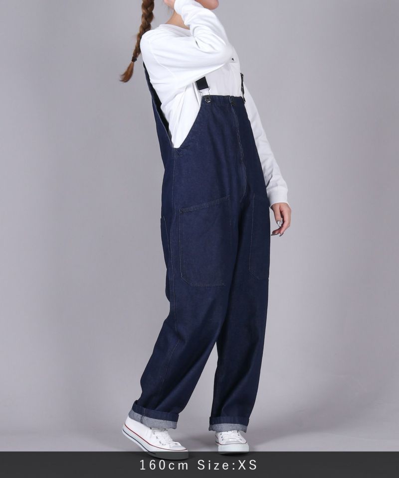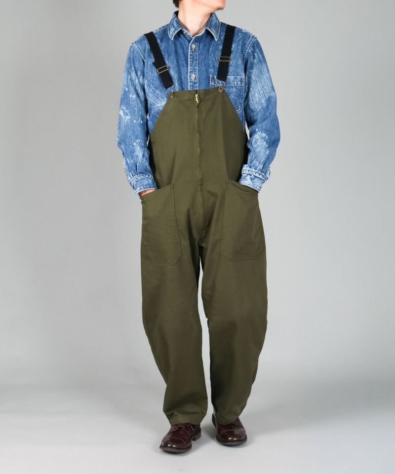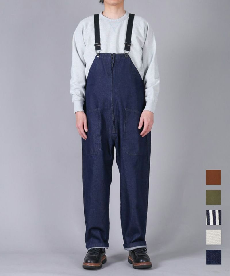 フロントファスナーとゆったりしたデザインが特徴的なオーバーオール。