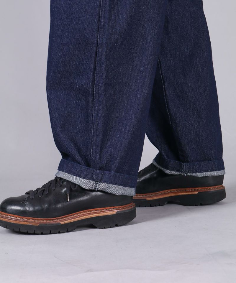 濃紺のデニム生地。着込むほどに色落ちし、経年変化を楽しめます。