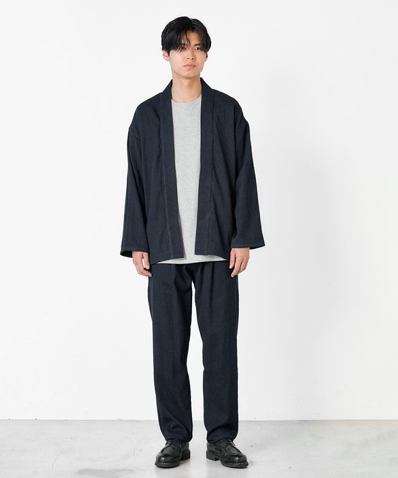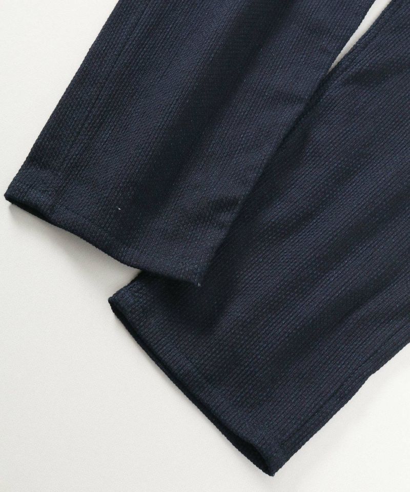 股上とお尻周りにゆとりを持たせていますが、裾に向かって絞りをかけることで、すっきりとした印象に仕上げています。