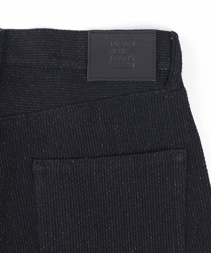 通常のブラックデニム生地と同様に、硫化染めの黒糸で染められた糸を使用しているため、経年変化もお楽しみいただけます。