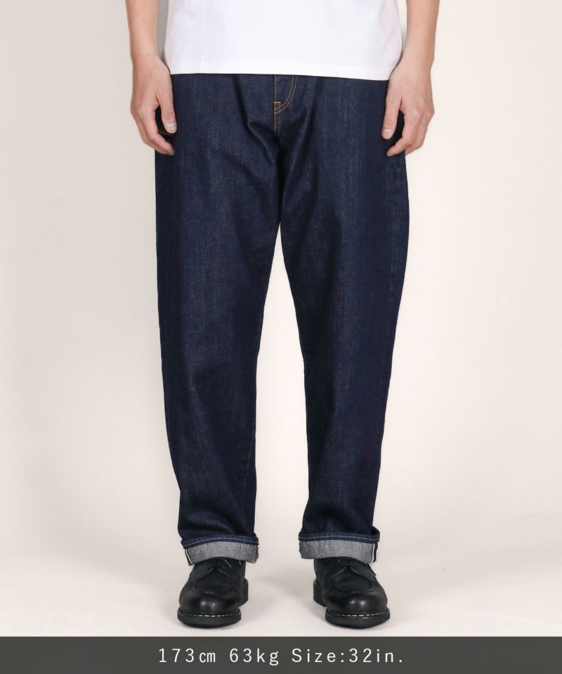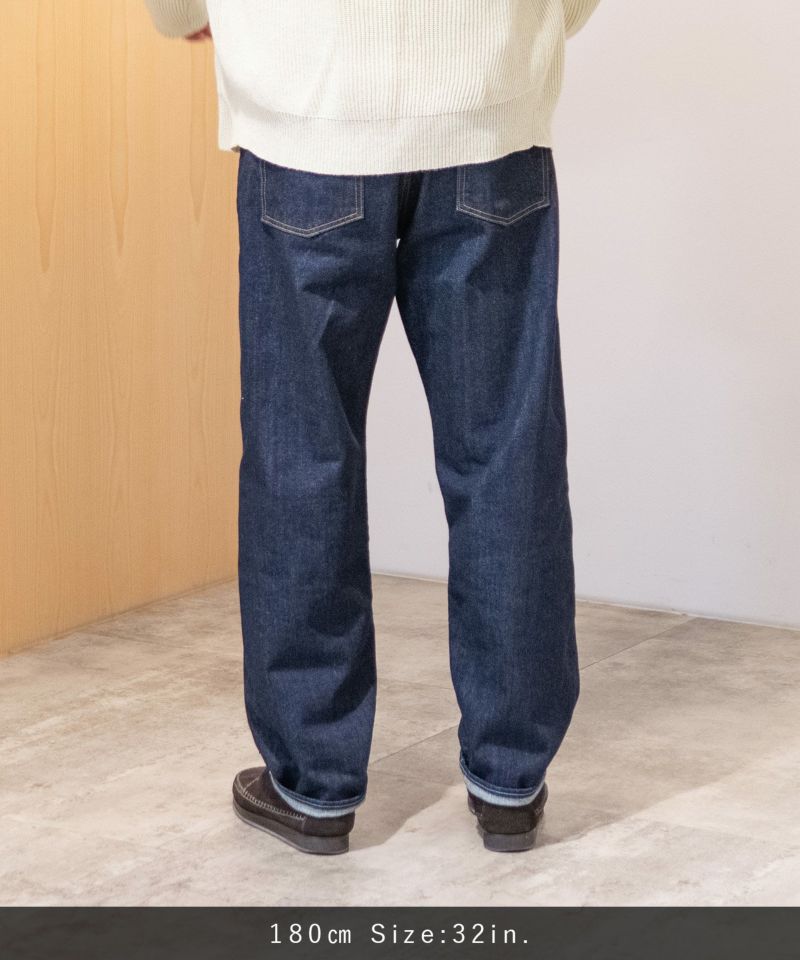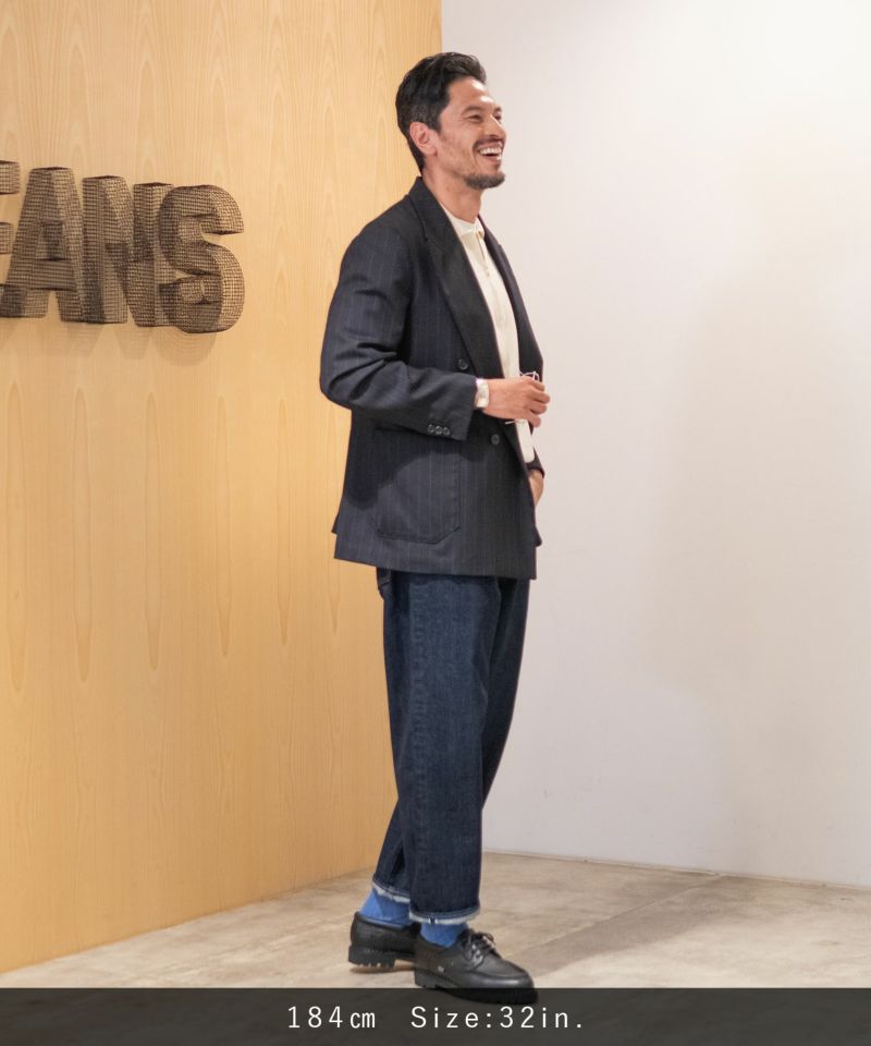 股上を深めに設定し、スラックスのような品のある穿きこなしにも対応できるため、きれいめからカジュアルまで、幅広いスタイリングに対応する一本です。