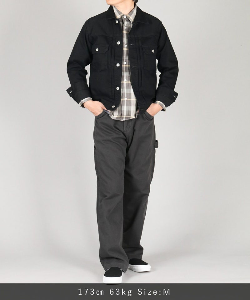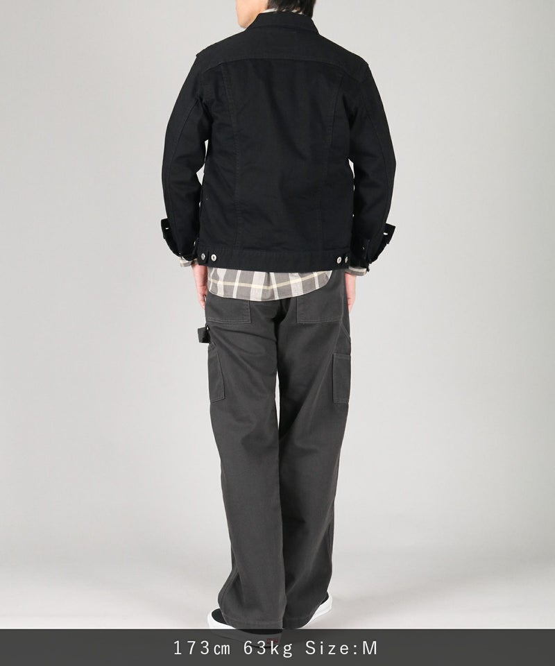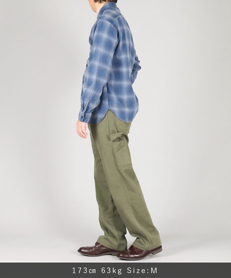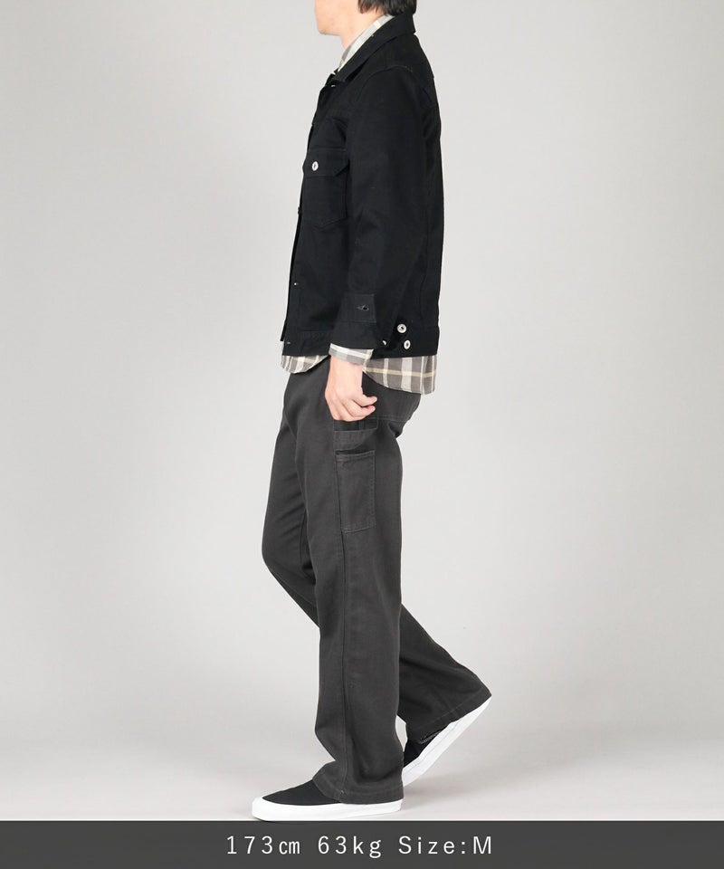 サイドに取り付けられたツールポケットとハンマーループがアクセントの、ゆったりしながらもストンと落ちるクラシカルなストレートシルエット。
