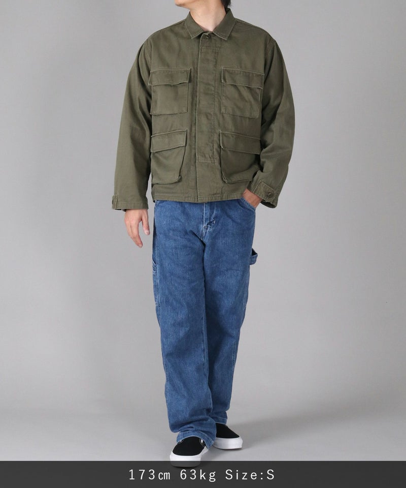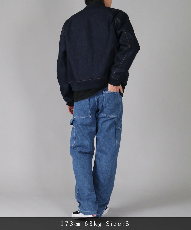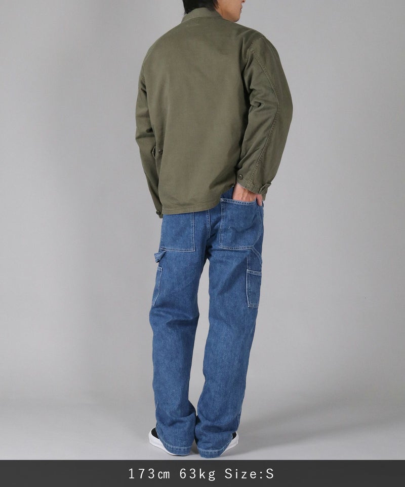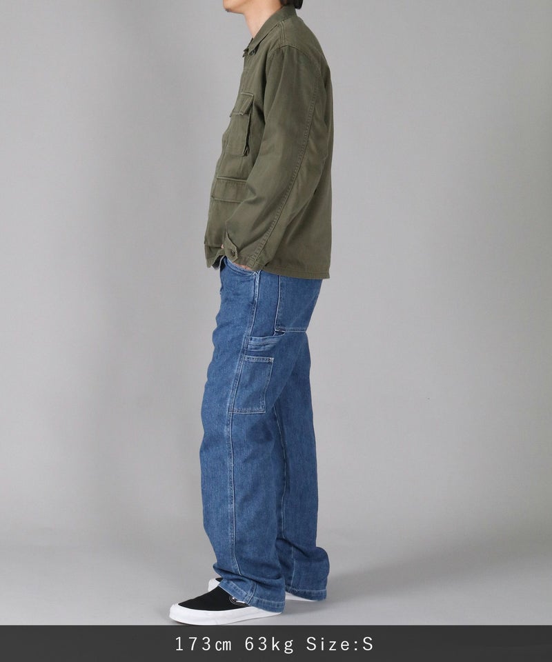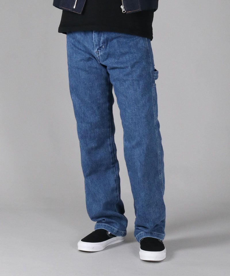 サイドに取り付けられたツールポケットとハンマーループがアクセントの、ゆったりしながらもストンと落ちるクラシカルなストレートシルエット。