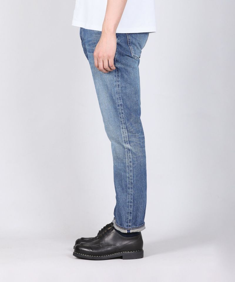 しっかり穿きこまれたジーンズをイメージして、生地が本来持つナチュラルな茶綿の風合いを表現した色落ちを児島の加工技術で再現しています。