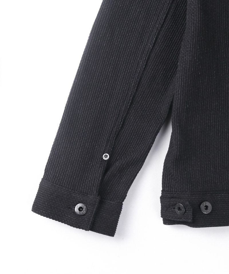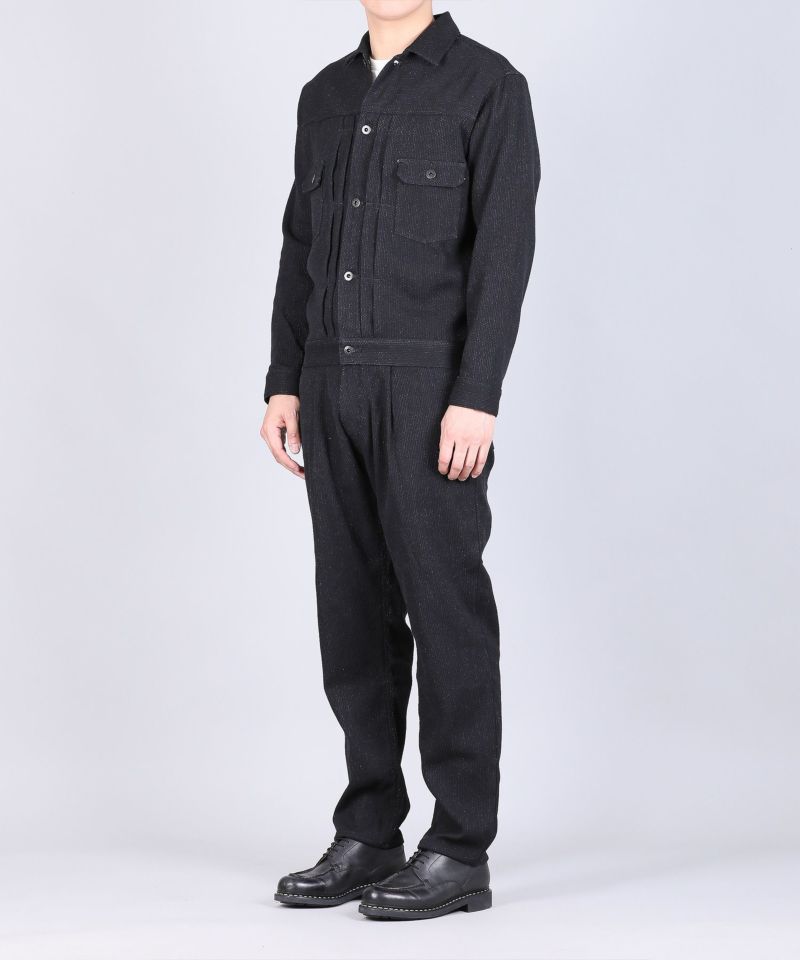通常のブラックデニム生地と同様に、硫化染めの黒糸で染められた糸を使用しているため、経年変化もお楽しみいただけます。