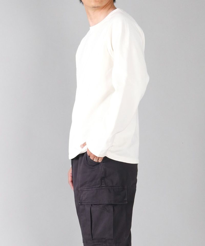 しっかりとした着心地のインレイの長袖Tシャツ。