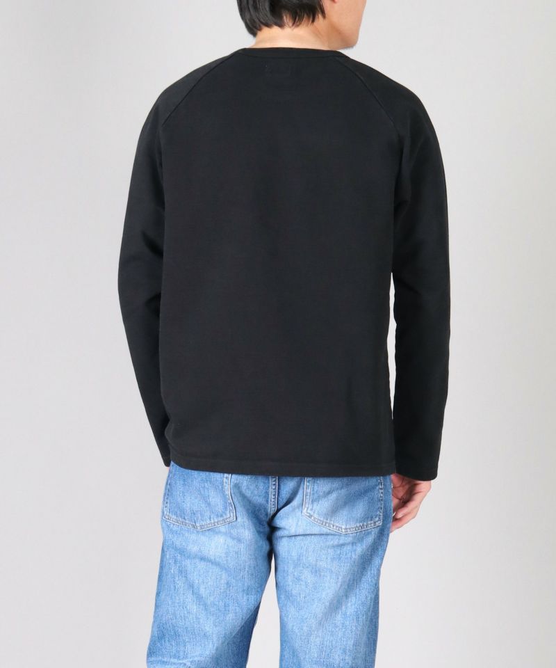 ハードな生地ながら、ラグランスリーブ仕様になっており、動きやすいのが特長です。