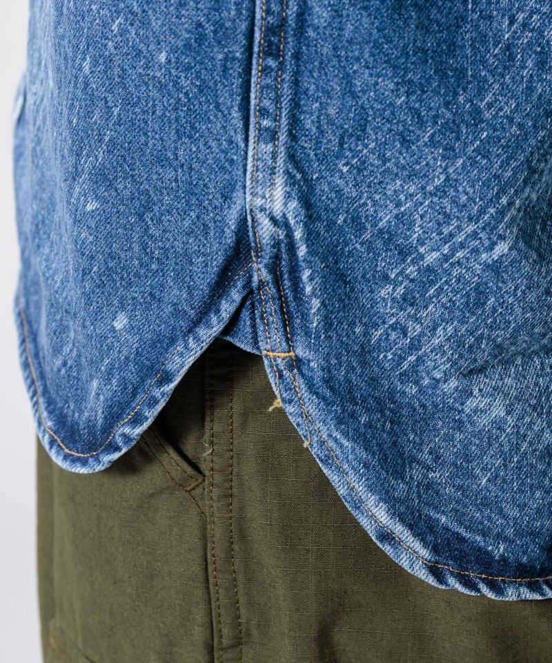 本来デニムジャケットに採用する肉厚の生地をデニムシャツに落とし込みました。
