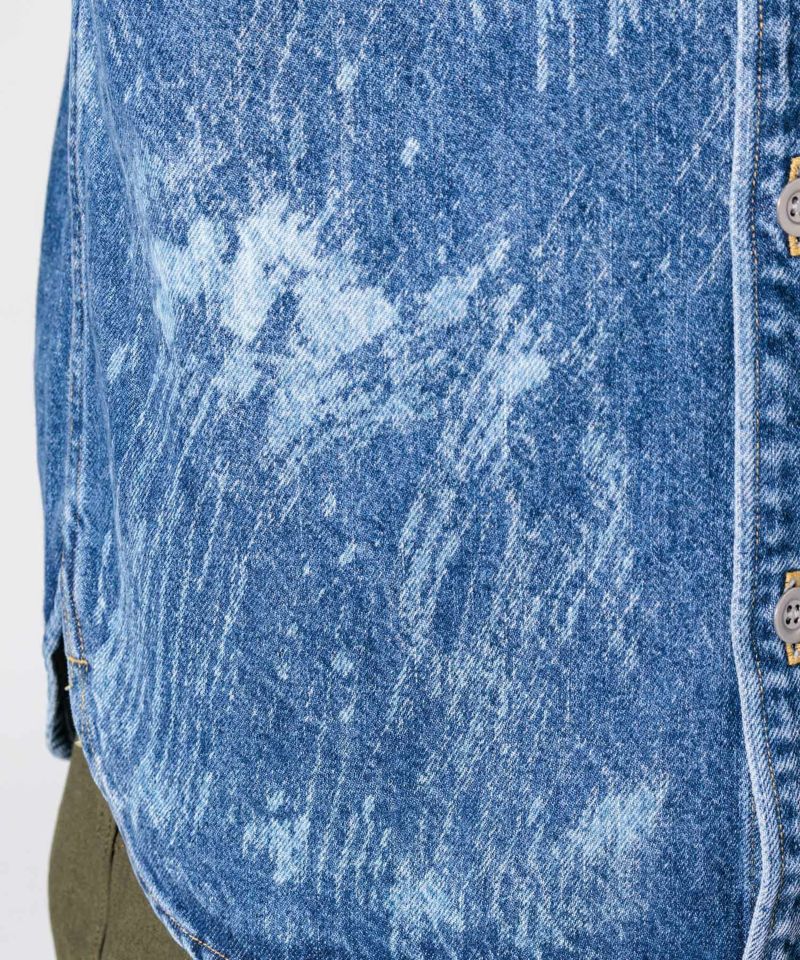 刷毛を使ったブリーチ加工のデザインが特徴的でコーディネートのアクセントに。